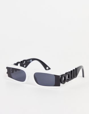 COLLUSION Unisex rectangle sunglasses with logo cut out in black and white
