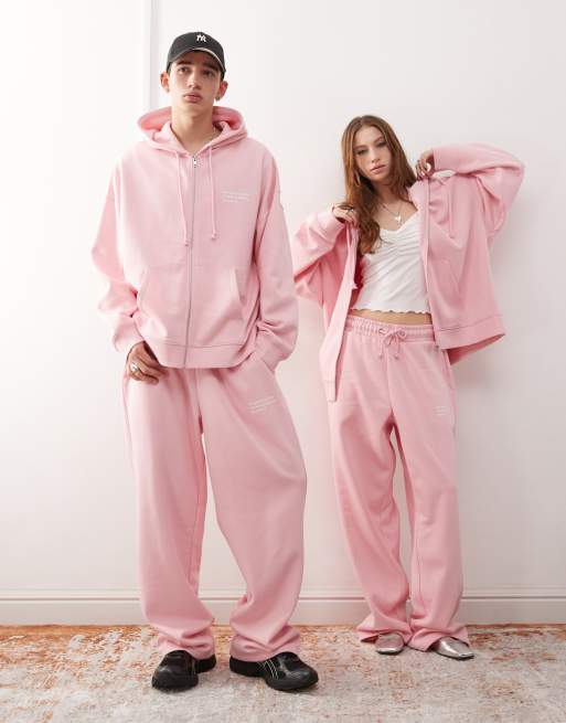 COLLUSION Unisex relaxed jogger co-ord with co-ordinate print in pink