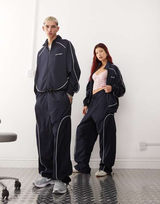 COLLUSION Unisex relaxed jogger with graphic and contrast seams in navy