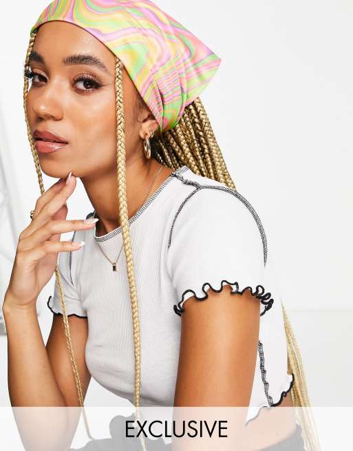 COLLUSION Unisex satin head scarf in fluro swirl print