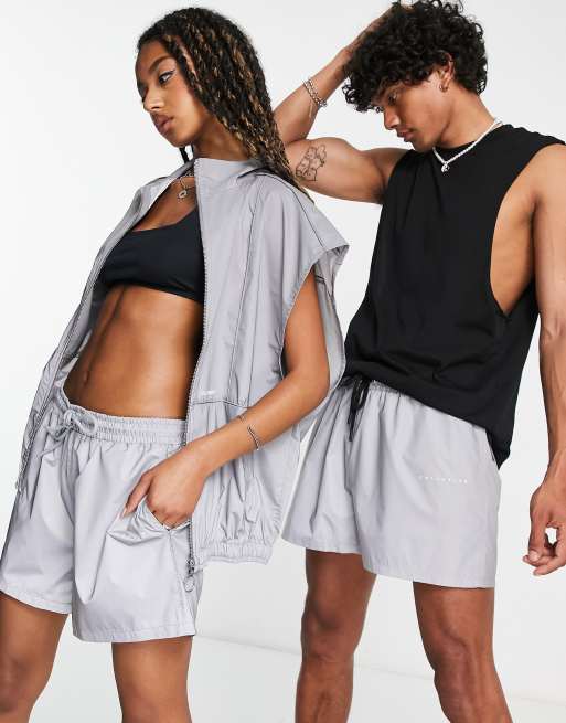 COLLUSION Unisex shorts in silver reflective fabric