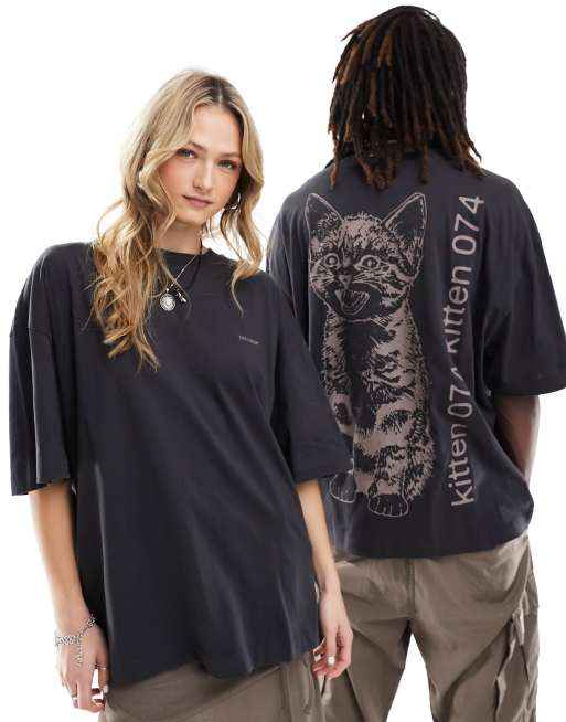 COLLUSION Unisex skater fit cat graphic t-shirt in charcoal