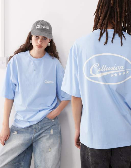 COLLUSION Unisex skater fit t-shirt in blue with print