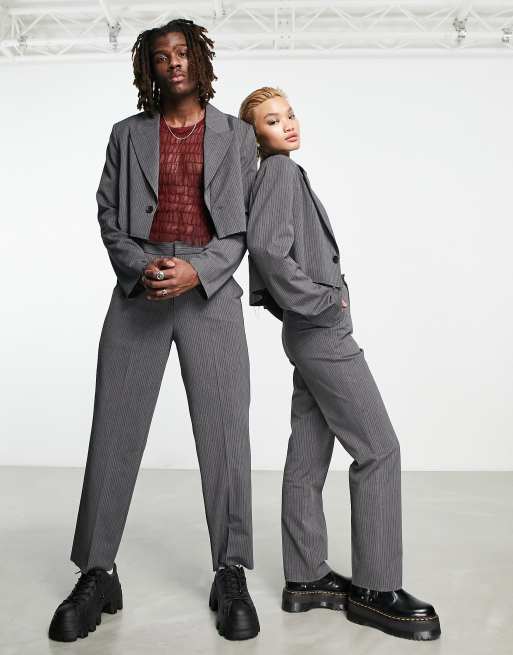 COLLUSION UNISEX straight trouser in black stripe co-ord
