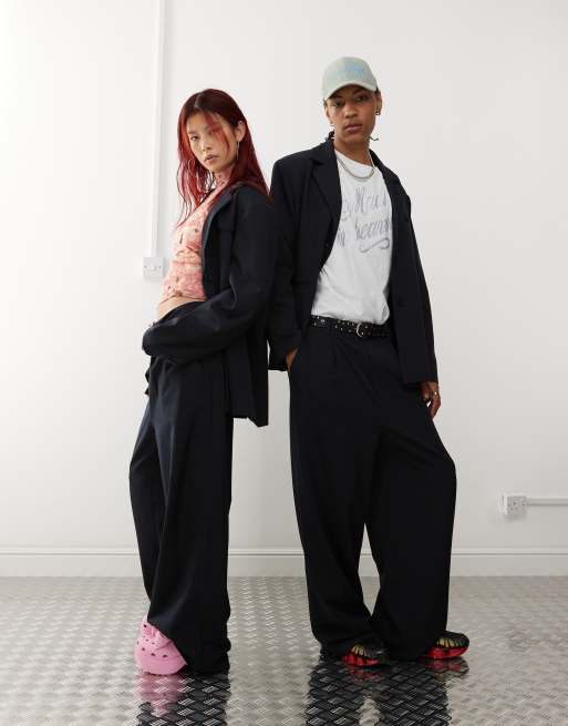 COLLUSION unisex suit trouser co-ord in navy