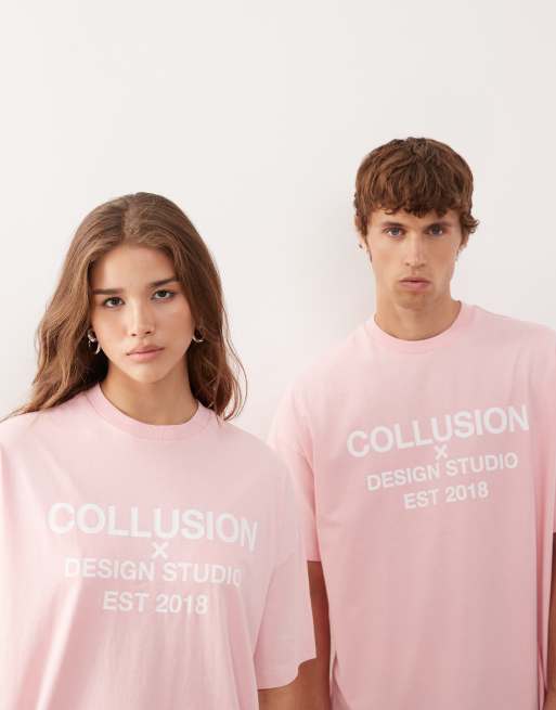 COLLUSION Unisex t-shirt with logo print in pink