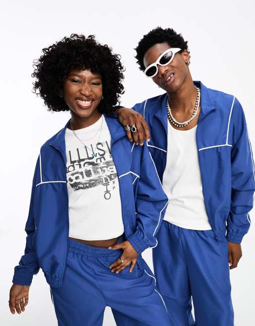 COLLUSION Unisex track jacket in blue co-ord