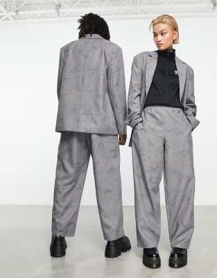 COLLUSION Unisex trousers with elasticated waistband in light grey with blue print