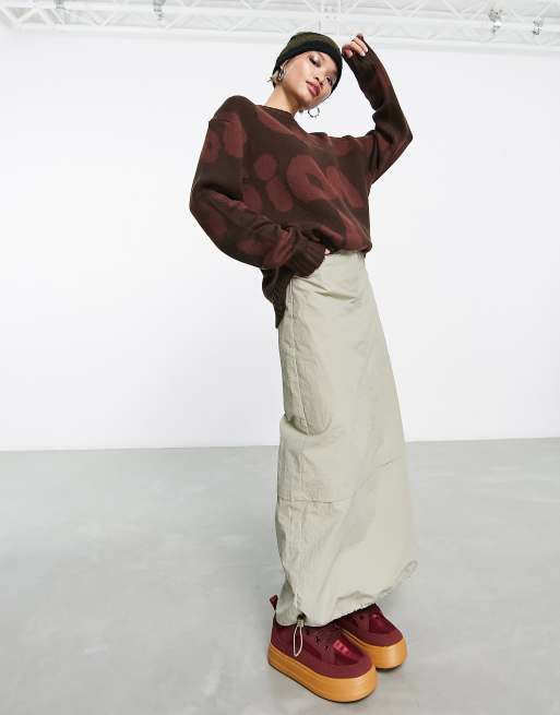 COLLUSION utility maxi skirt in khaki