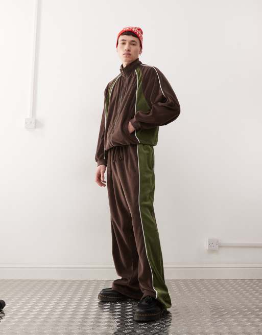 COLLUSION Velour track jogger in green and brown