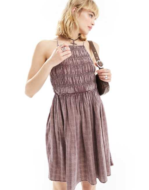COLLUSION western shirred halter mini sun dress in washed pink