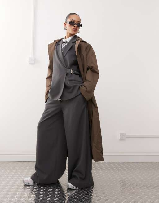 COLLUSION wide leg belt detail trouser co-ord in grey