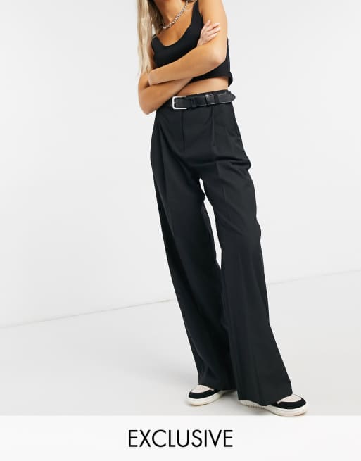 COLLUSION wide leg relaxed trousers with waist belt in black