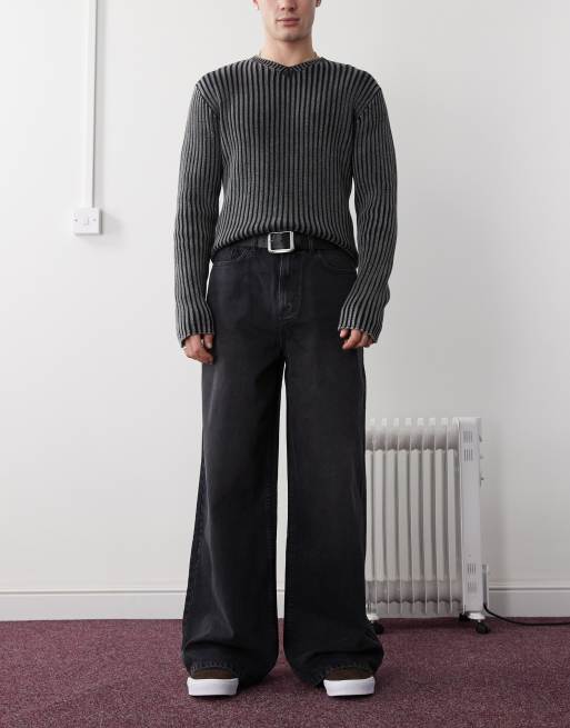 COLLUSION X003 wide leg jeans in washed black - BLACK