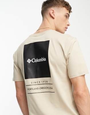 Columbia Barton Springs back print t-shirt in beige Exclusive at ASOS