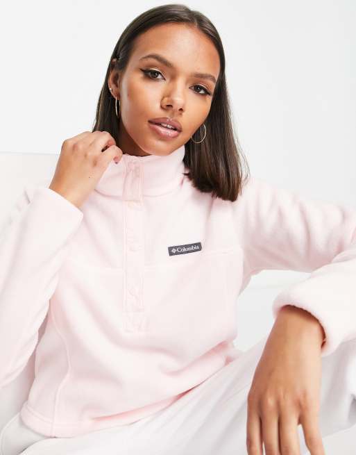 Columbia Benton Springs cropped half zip fleece in light pink Exclusive at ASOS