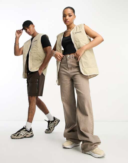Columbia Doverwood crinkle fabric unisex quilted liner gilet in beige Exclusive at ASOS