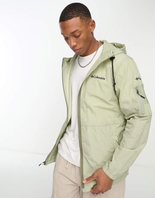 Columbia Doverwood crinkle utility windbreaker in khaki Exclusive at ASOS