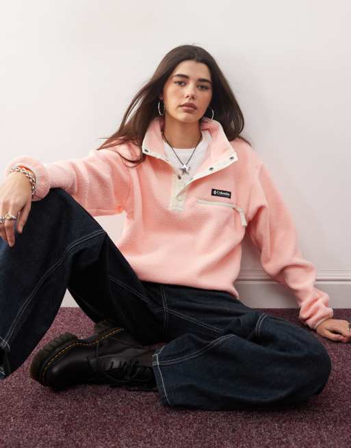 Columbia Helvetia II cropped half snap fleece in pink sand, chalk