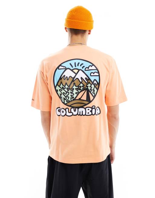 Columbia Hike Happiness II back print t-shirt in orange Exclusive at ASOS
