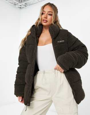Columbia Puffect sherpa unisex puffer jacket in brown Exclusive at ASOS