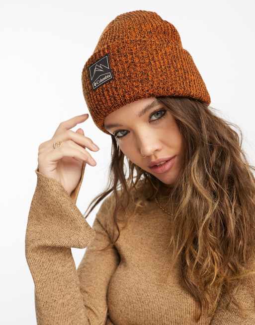 Columbia Whirlibird logo patch cuffed beanie in tan