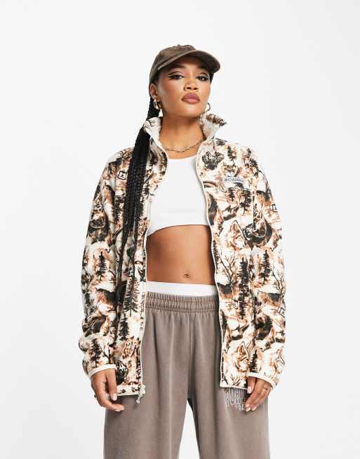 Columbia Winter Pass print full zip fleece in cream wolfscape print