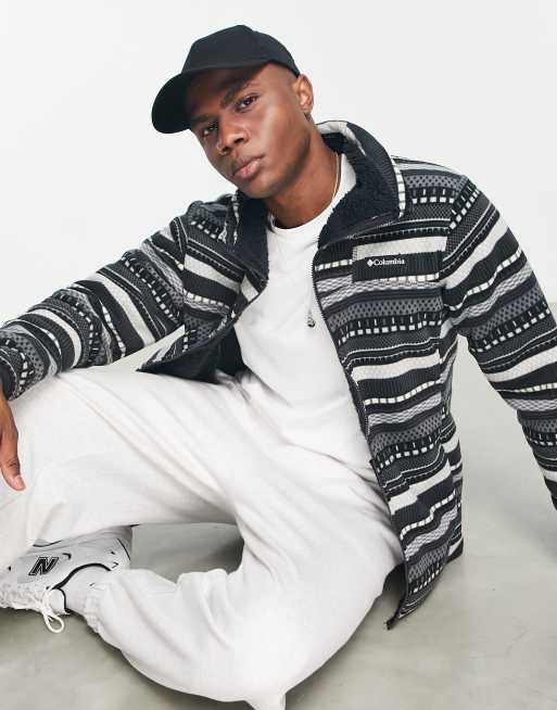 Columbia Winter Pass print full zip fleece in grey mountain stripe