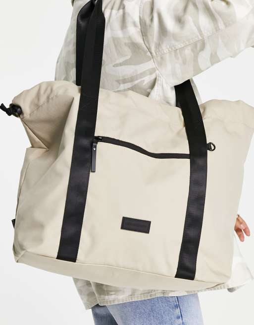 Consigned drawstring tote bag in sand