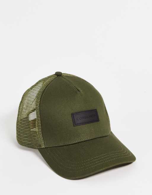 Consigned mesh trucker cap in khaki