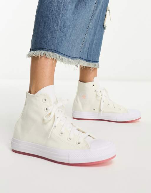 Converse Chuck Taylor All Star hi trainers in cream with pink sole
