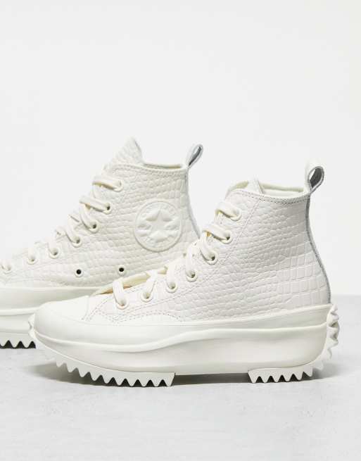 Converse Run Star Hike Hi croco embossed leather trainers in triple egret