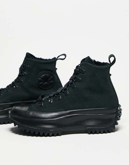 Converse Run Star Hike Hi trainers with hiking detail in triple black