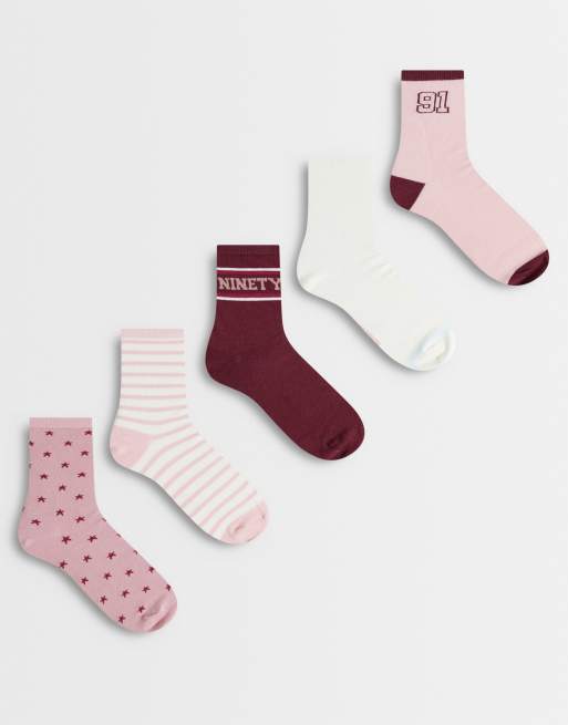 Cotton On 5 pack crew sock in berry stars mix