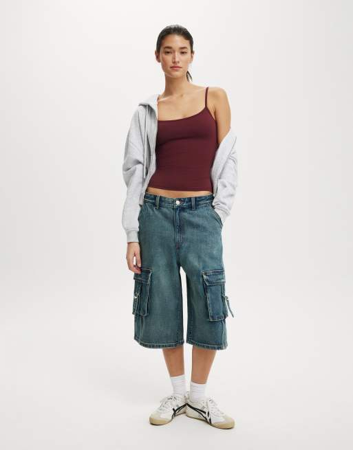 Cotton On 91 baggy denim jort in blue - MBLUE