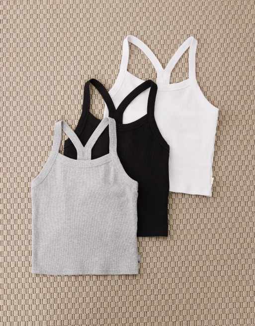 Cotton On Active 3 pack T bar cropped tank in black, white & grey
