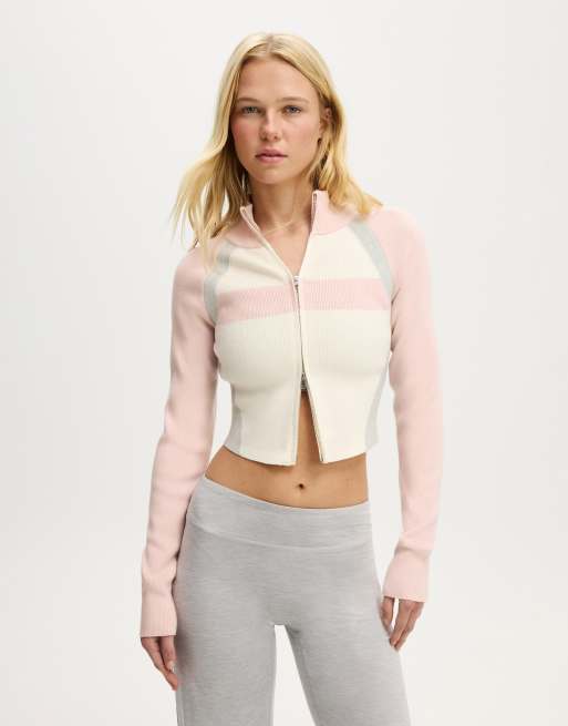 Cotton On Active spliced knit zip through in pink