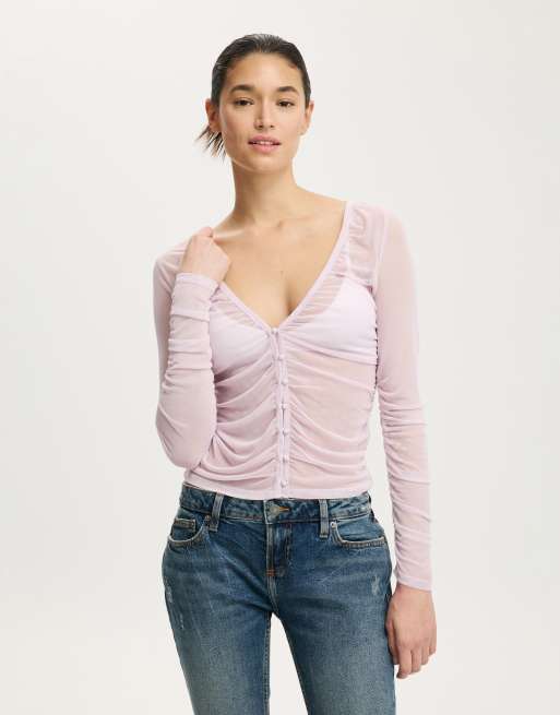 Cotton On Alix mesh button through long sleeve in purple