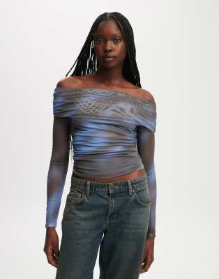 Cotton On Ashley off shoulder mesh long sleeve top in brown