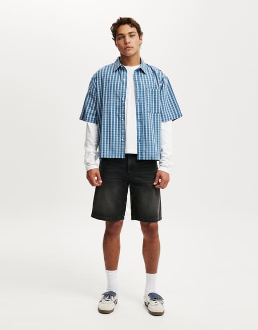 Cotton On baggy denim short in revolve black