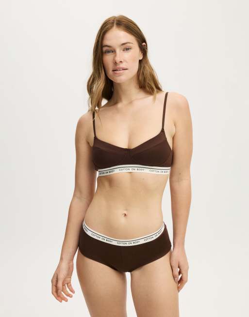Cotton On Branded cotton balconette bralette in brown