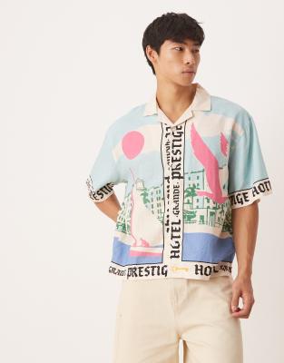 Cotton On Cabana short sleeve shirt in blue vacay border print