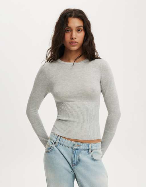 Cotton On Close knit crew top in grey