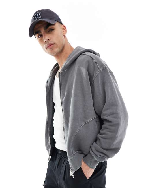 Cotton On cropped box zip up hoodie in slate stone