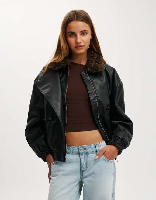 Cotton On Darcy faux leather bomber in black