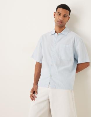 Cotton On Eli linen blend short sleeve shirt in textured summer blue