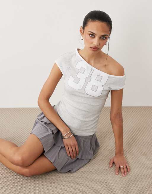 Cotton On graphic off shoulder tee in grey marle