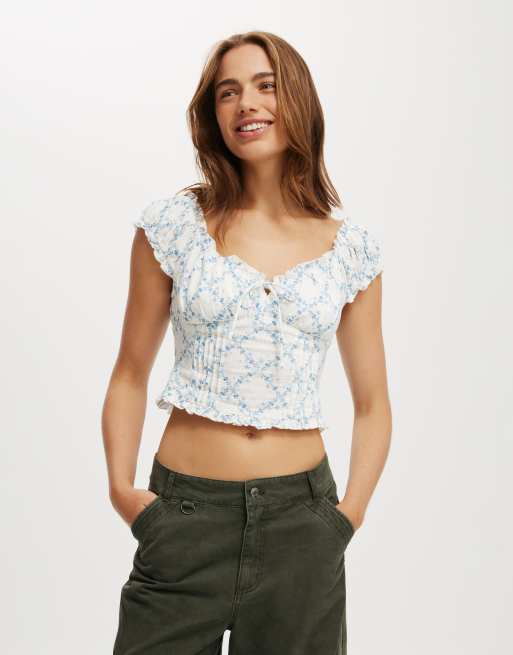 Cotton On Greta frill sleeve blouse in multi - MULTI