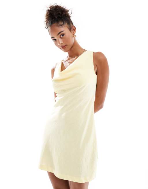 Cotton On Haven cowl neck linen blend mini dress in lemon