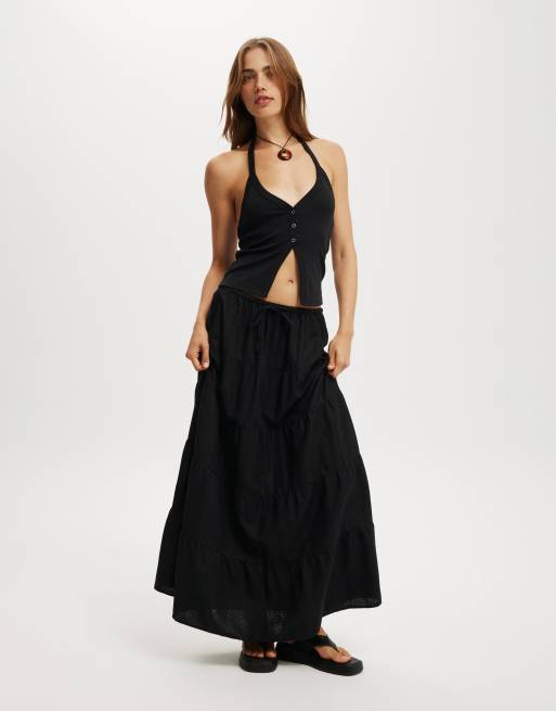 Cotton On Haven multi tiered maxi skirt in black - BLACK